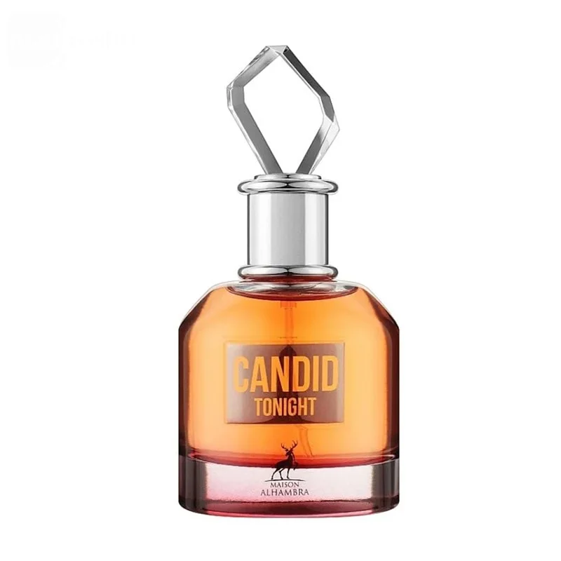 عطر زنانه الحمبرا مدل کاندید تونایت، دارای رایحه گرم و شیرین بوده و در دسته گروه بویایی گلی مدیترانهای قرار دارد. این عطر به دلیل طبع گرمی که دارد مناسب فصول سرد میباشد. رایحه عطر Alhambra Candid الهام گرفته شده از عطر معروف "ژان پل گوتینه اسکندل" است.