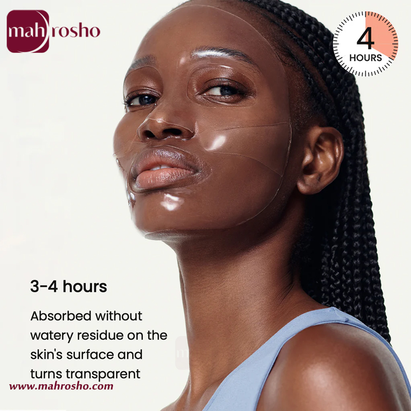 - ساختار هیدروژلی با جذب بالا: ماسک حین استفاده به تدریج شفاف میشود که نشان دهنده جذب کامل مواد فعال توسط پوست است.