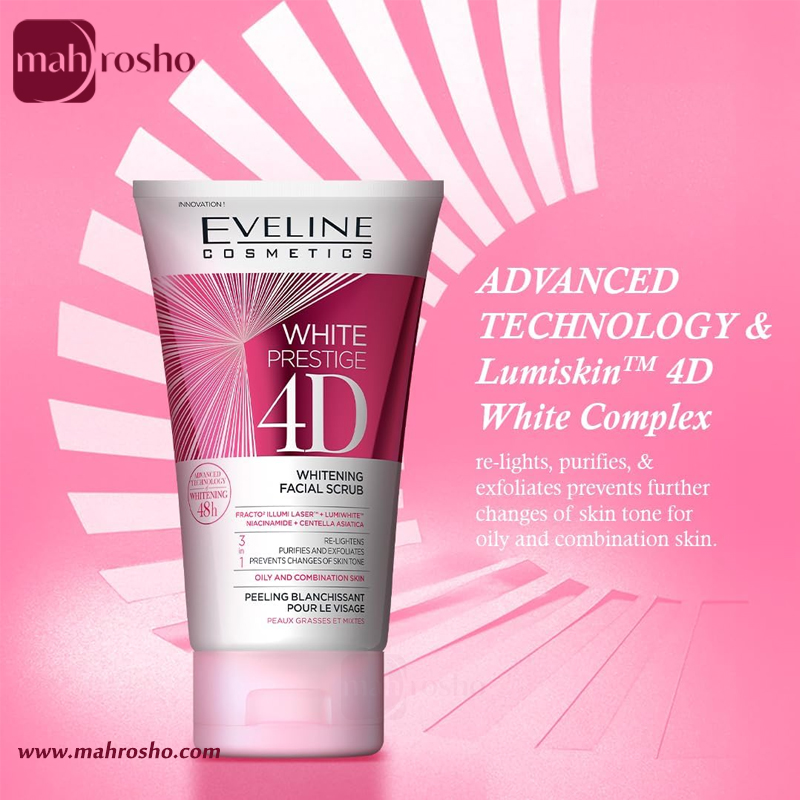 Eveline White Prestige 4D Whitening Facial Scrub for Oily and Combination Skin , 150ml