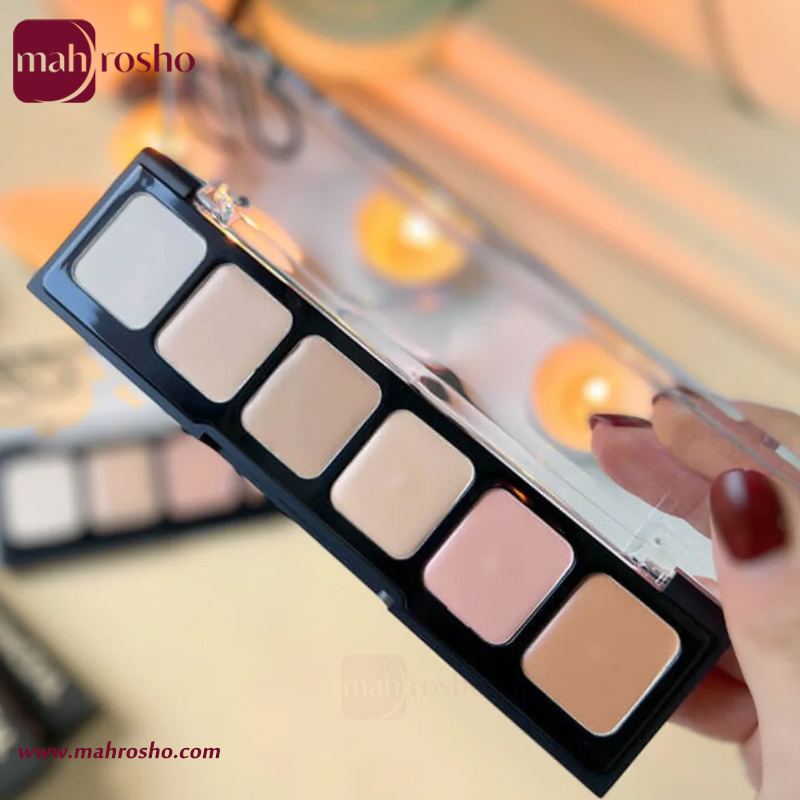 - پالت شامل ۶ رنگ کرمی متنوع است. رنگهای روشن برای هایلایت، رنگهای تیره برای کانتورینگ و اصلاح کنندهها برای خنثی کردن تیرگیها و تغییر رنگ پوست استفاده میشوند. با این پالت میتوانی پوستی صاف، طبیعی و بدون عیب داشته باشی.
