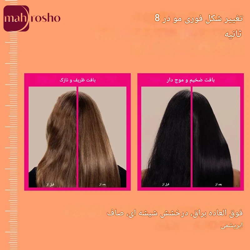 موهایتان را شامپو بزنید و سپس آبکشی نمایید. پس از گرفتن آب اضافی موها با دست، دوز مناسب را به موهای خیس بمالید. برای موهای نازک و متوسط 1 دوز و برای موهاب ضخیم و مجعد 2 تا 3 دوز مناسب است. میتوانید دوز مصرفی را با نگاه کردن به خطوط دوز روی بسته تنظیم کنید. طبیعی است که هنگام فعال شدن محصول موها احساس گرما کنند. و در آخر پس از 8 ثانیه موها را آبکشی نمایید.