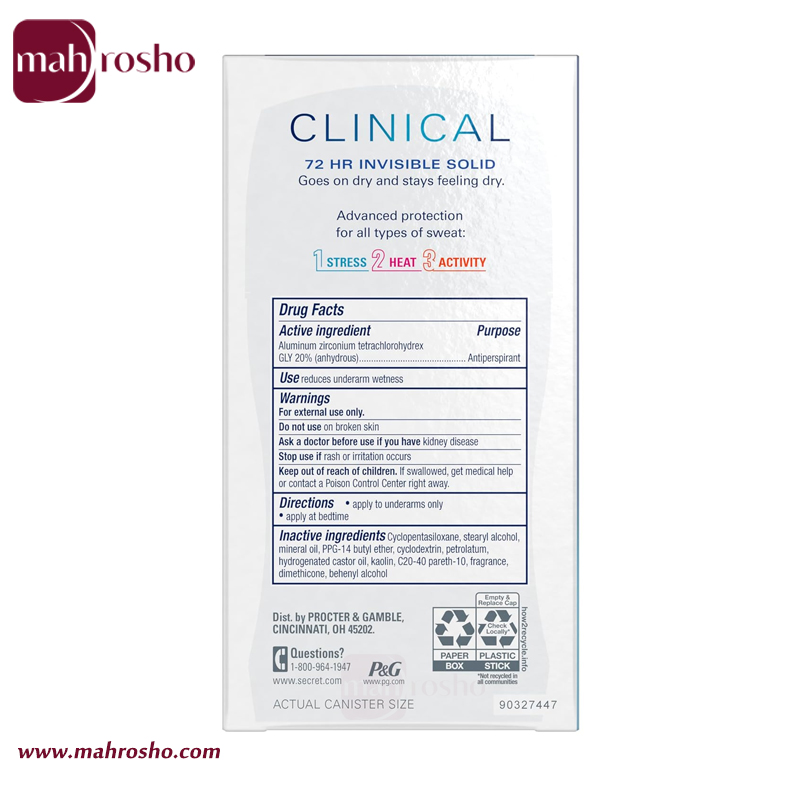 مشخصات استیک ضد تعریق کلینیکال سکرت: