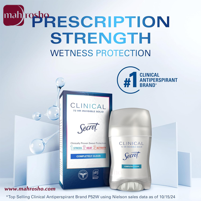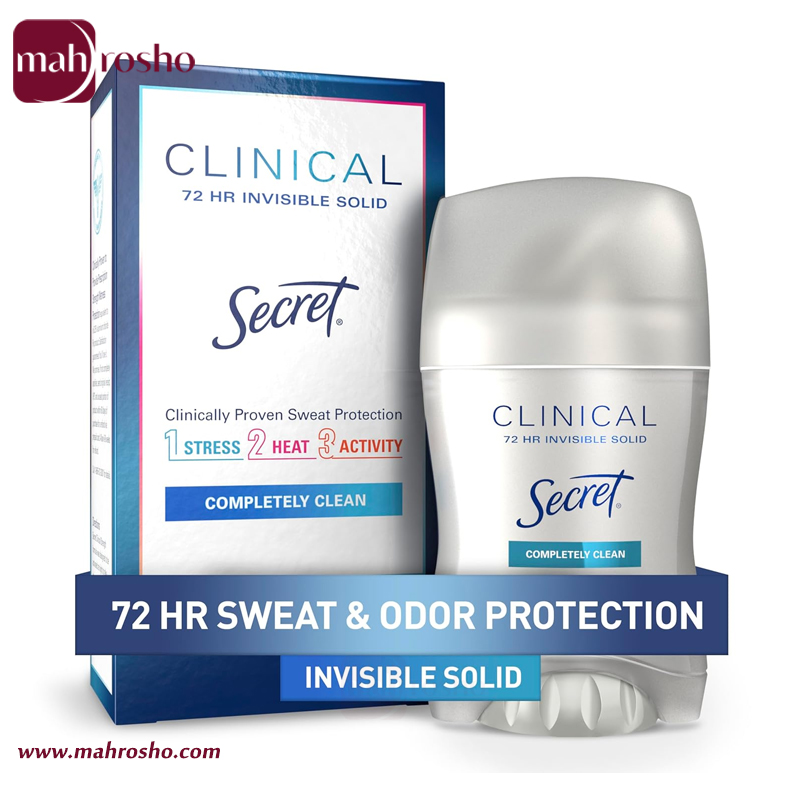 یکی از محصولات تخصصی برند آمریکایی Secret است که برای کنترل مؤثر تعریق و بوی نامطبوع بدن طراحی شده است. این محصول با بهره‌گیری از فرمولاسیون بالینی و فناوری ضد‌ تعریق پیشرفته، محافظتی ماندگار تا ۷۲ ساعت ایجاد می‌کند و حتی در شرایطی چون گرما، استرس یا فعالیت بدنی بالا نیز احساس خشکی و تازگی را حفظ می‌نماید.