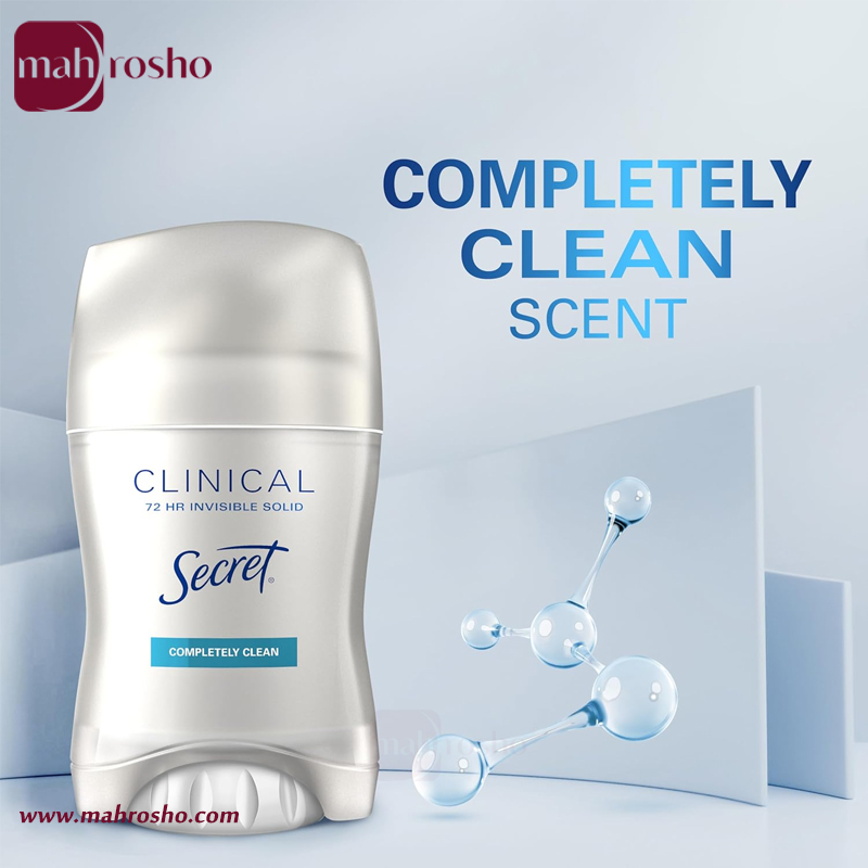 مام صابونی ضد تعریق کلینیکال سکرت مدل Completely Clean محصولی ایده‌آل برای افرادی است که به‌ دنبال کنترل قوی تعریق، جلوگیری از بوی نامطبوع و حفظ حس تازگی در تمام طول روز هستند.