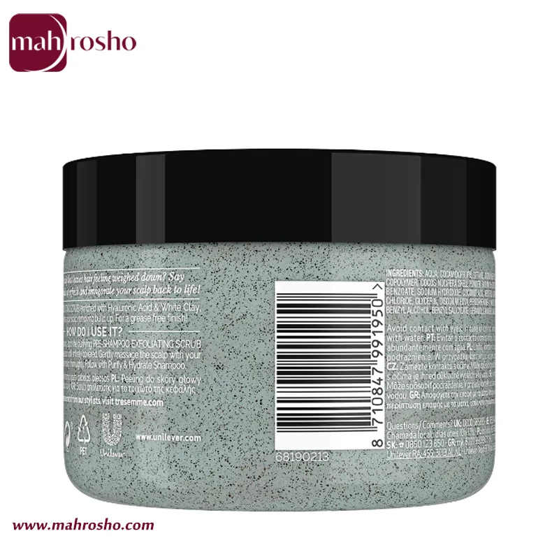 - این محصول به طور خاص برای پوست سر طراحی شده است و برای پوست بدن مناسب نیست. برای لایه برداری پوست بدن، پیشنهاد میشود از اسکرابهای مخصوص بدن استفاده کنید.